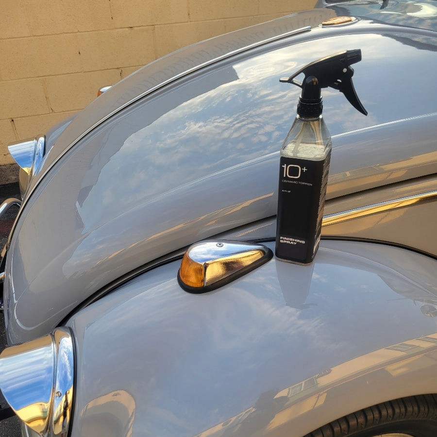 FINISHING SPRAY is a detail spray on SiO2 steroids, designed for easily replenishing your vehicle's protection. This LIQUID is intended to act as an occasional maintenance spray to extend the lifetime and performance of any existing ceramic coating. The robust graphene-ceramic infusion enhances the shine and slickness of vehicle paint while also being able to provide up to 12 months of standalone protection. Most importantly, this formula accelerates the curing time of ceramic coatings, so you can finish vehicles faster and better.