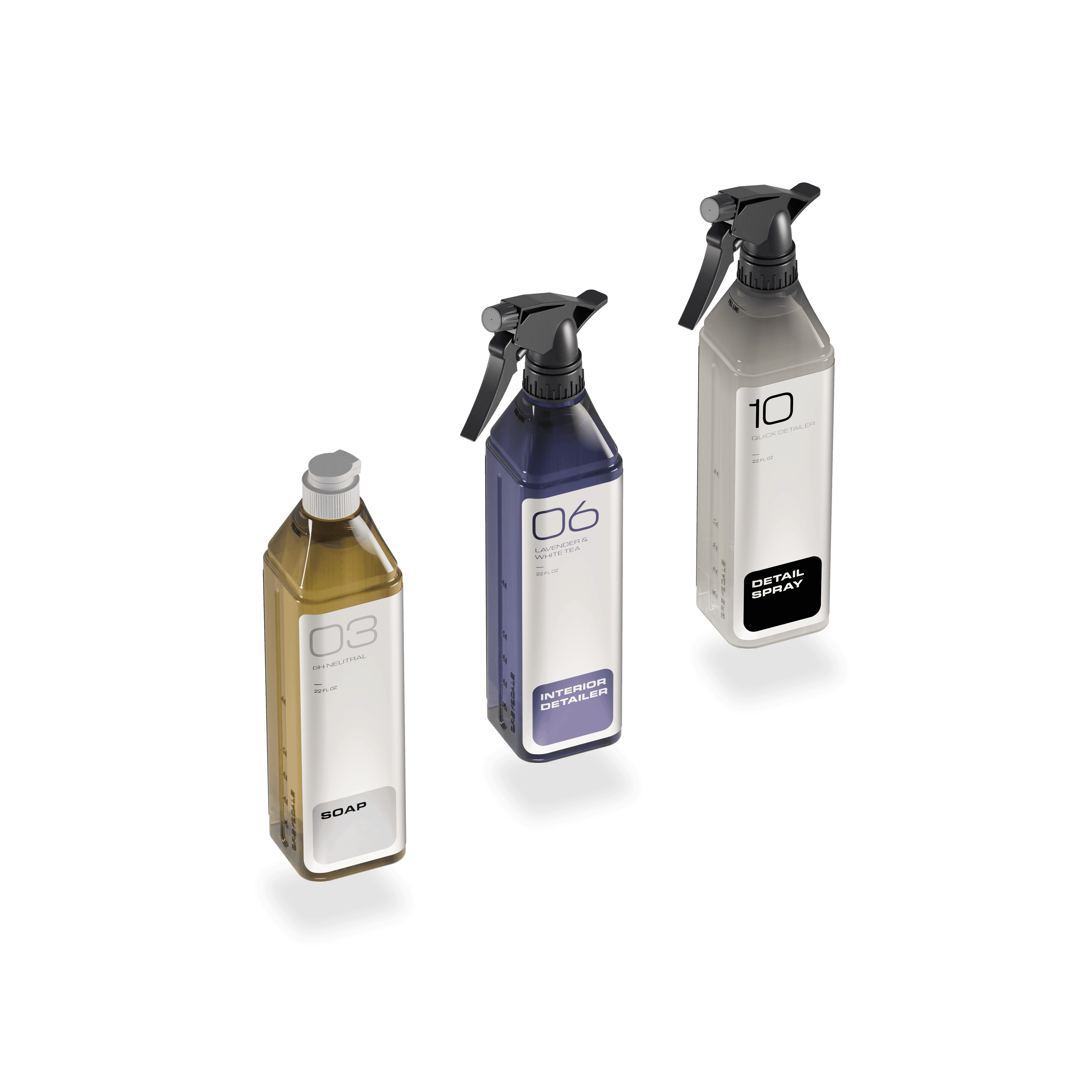 The secret to GREYSCALE is starting at 03. 03, 06, and 10. That's it. Just three products if you're looking for a quick and easy way to stay on top of the grime. SOAP for the outside. INTERIOR DETAILER for the inside. DETAIL SPRAY for most everything in between. A 5-pack of PLUSH FIBER towels for it all.